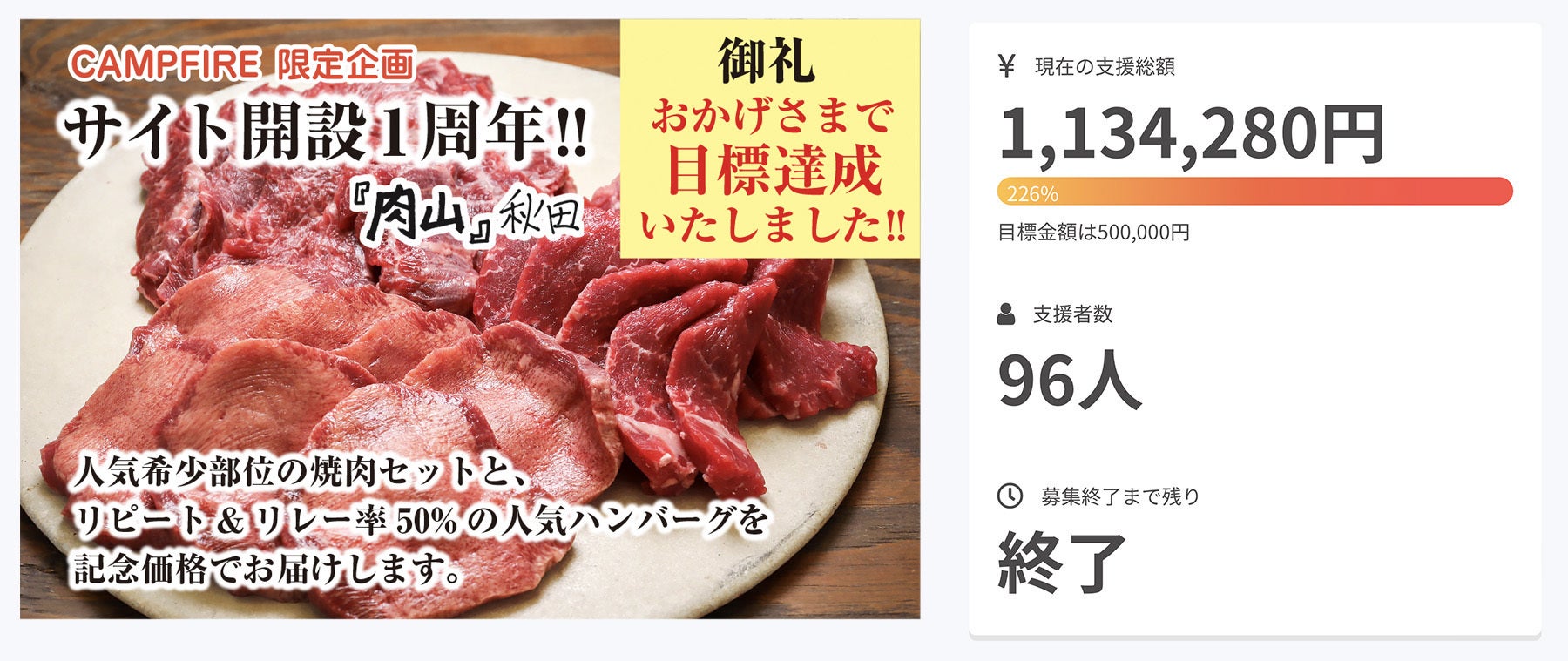 株式会社BaseLineです。昨年、サイト開設1周年の際には、たくさんのご支援をいただきましてありがとうございました!感謝いたします!このたび、私たちの新しいプロジェクトが進行しています。4年の歳月をかけて開発した肉の旨味を引き出す調味料『肉醤』使用のシャリアピンソースに、赤身肉ローストビーフや秋田牛のステーキ肉を組み合わせた、キャンプファイヤー限定の金額設定です。皆様のご支援いただけましたら幸いです。プロジェクトページは、こちらのURLからjump出来ます。ぜひご覧ください!https://camp-fire.jp/projects/view/631184?utm_campaign=cp_po_share_mypage_projects_show