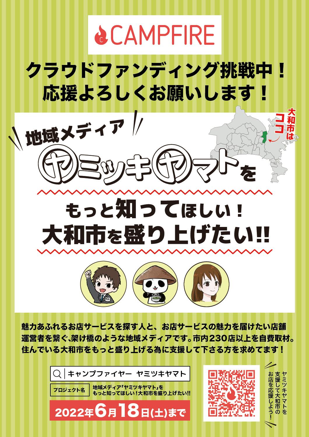 同じく大和内在住のフリーランスデザイナーIさんの全面協力もあり、ヤミツキヤマトのクラウドファンディング宣伝チラシが完成しました!!