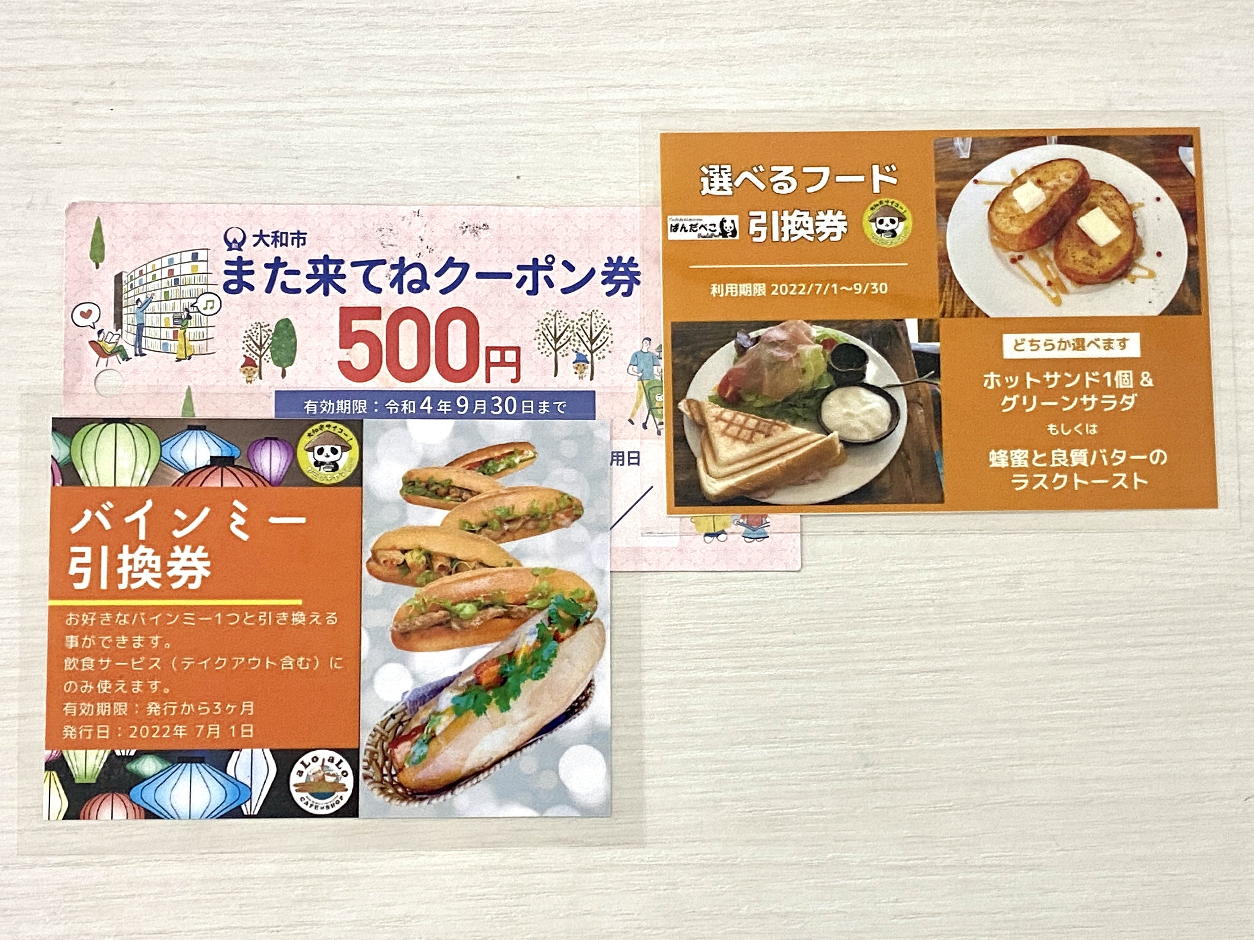 大和市のまた来てねクーポン券と同じ有効期限です。
