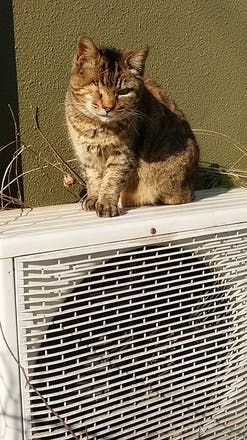 エアコンの室外機の上で太陽を浴びてぬくぬくになっていました。