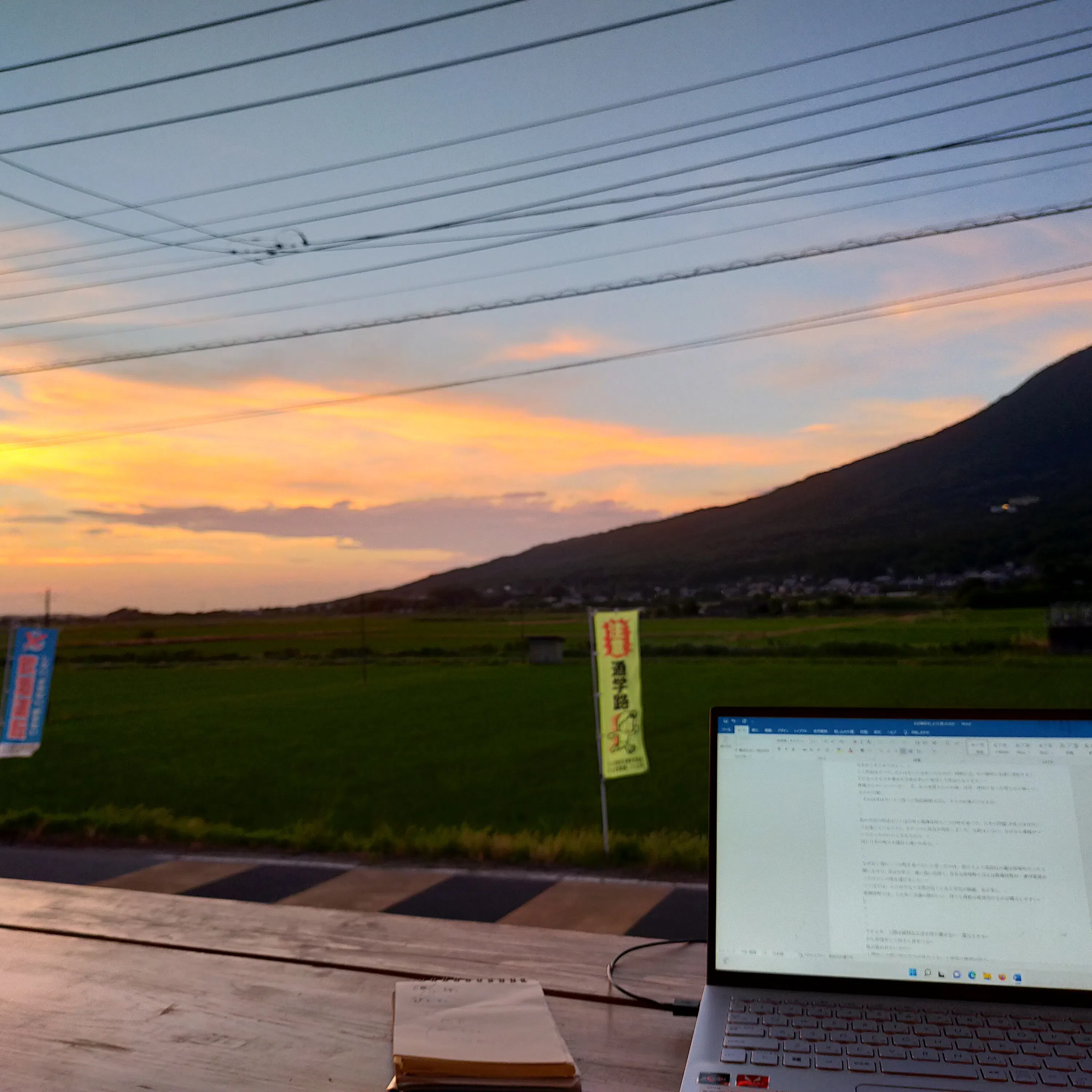 また、今日はずっと制作ではなくて、作品で何を伝えたいかとか、色々と考えなおしました。筑波山を背景に外で、ノートパソコンするってすごい新鮮な気持ちでしたが、全然文章は進まなく作品作りが進みました。