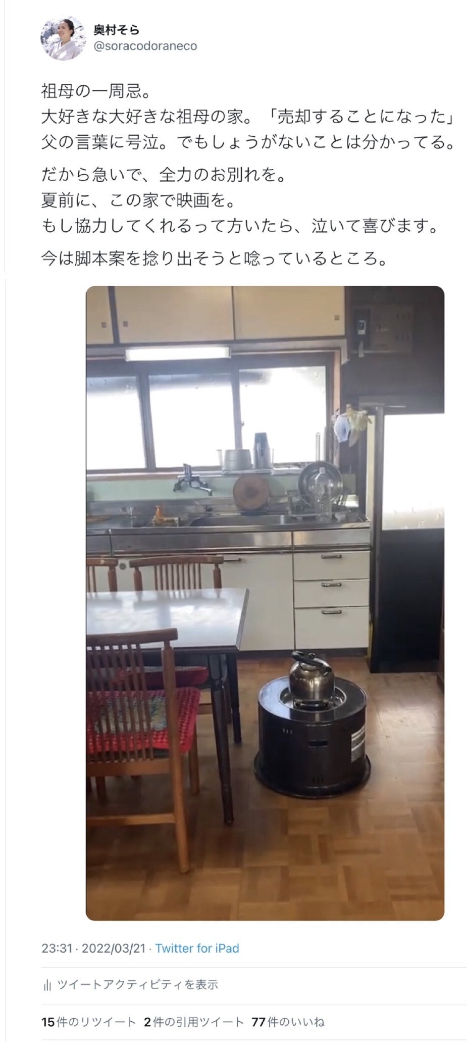 だからせめて作品の中にでもこの家を遺したいとこの短編映画を企画し、
