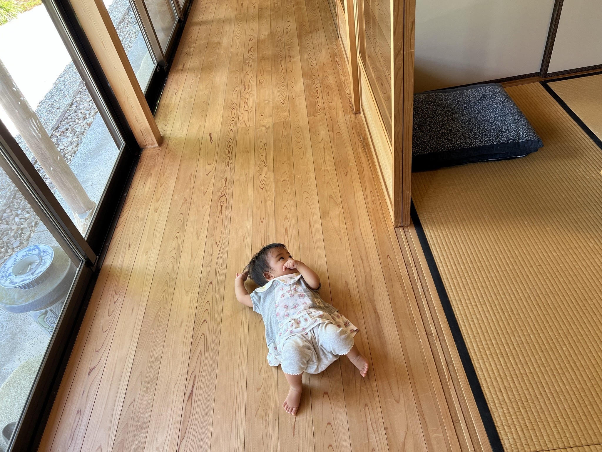 おちびさん、気持ちの良い縁側でごろんごろん。