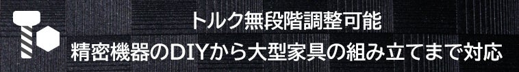 ■トルク無段階調整可能、精密機器のDIYから大型家具の組み立てまで対応。