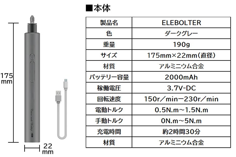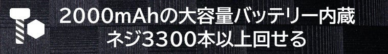 ■2000mAhのバッテリー搭載、回せるネジが3300本以上