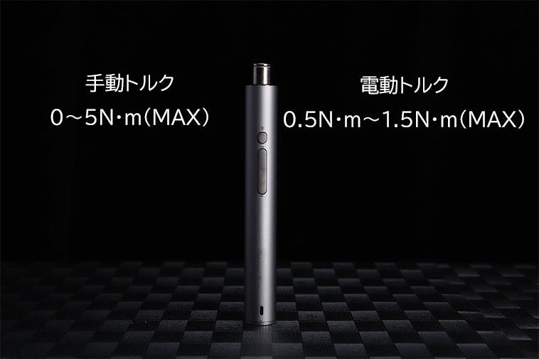 小型ながら、トルクが0.5N.m~1.5N.mまで無段階調整できます。