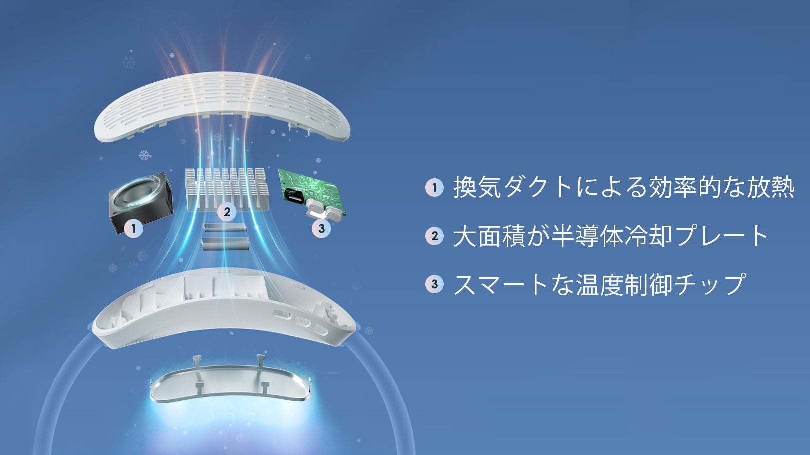 首部分には大面積の半導体冷却プレートを搭載し、スマートチップで温度を制御します。優れた冷却時術により、襟回りを効果的に冷やし、本当の涼しさを実感できます。