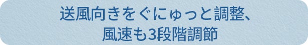 柔軟性の高い本体は、曲げることで簡単に風向きを調整可能、自分が一番快適に感じる風向きにすることができます。送風口は髪の毛巻き込み防止を施した安 全設計のため、髪の毛が巻き込まれる心配もありません。