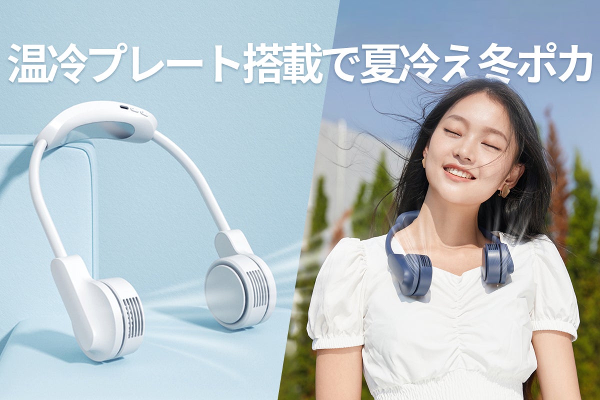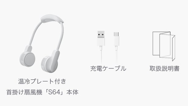 温冷プレート搭載により夏は涼しく、冬は暖かく快適に過ごせます。本体はとてもやわらかい素材でできており、風向きも自由に調整可能。軽いので首に負担がかからず、長時間の使用でも快適です。今年の夏のお供は首掛け扇風機「S64」で決まり!