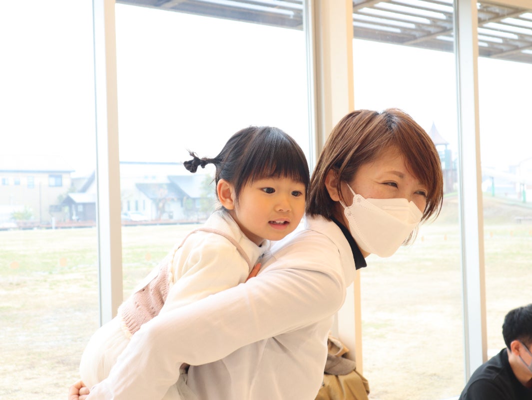我が子ではありません笑 背中が空いていれば乗っかってくれる参加者の子です。