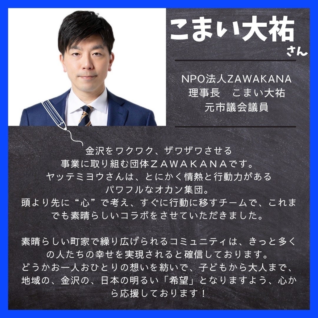 青山学院大学経済学部卒業。首都圏にて人材採用コンサルタントやメーカーでの新規事業の立ち上げ等に従事。金沢へUターン後、街の問題点を若手の立場から議会へ届けるため、金沢市議会議員補欠選挙に立候補。