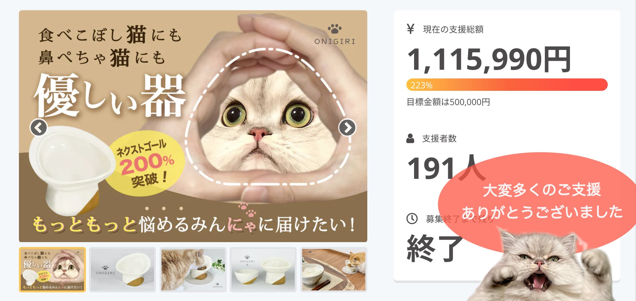 プロジェクト終了後も、この「優しい形」のウォーター・ボウルを、悩める猫とそのオーナー様に届け続けたいと思っています。ぜひ、多くの方の温かいご支援をお待ちしております。