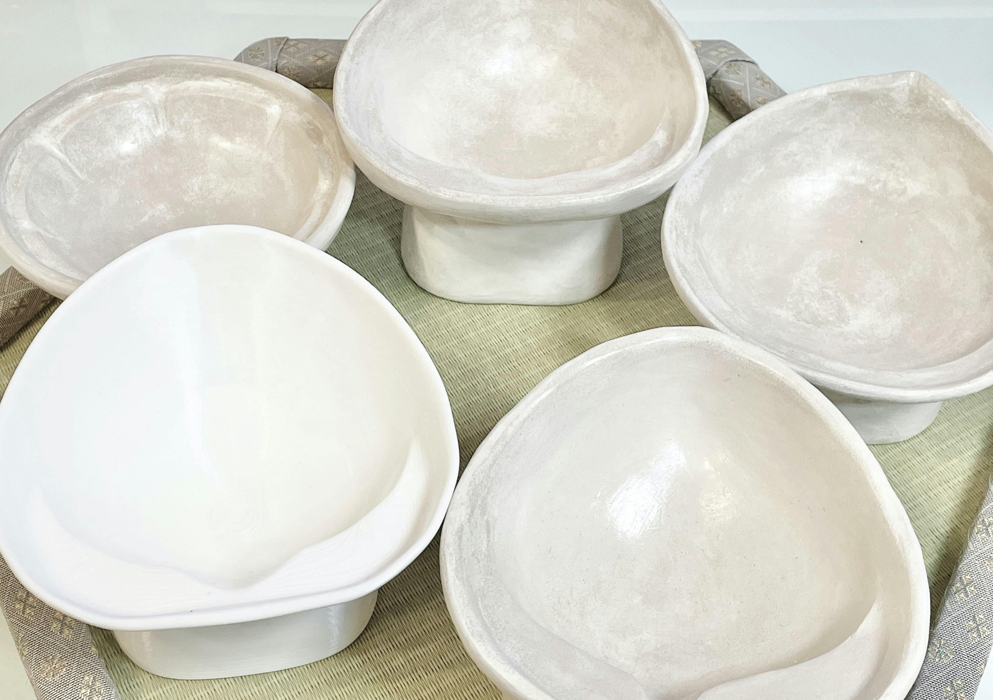 「パウ・ボウル SHIZUKU」は(前作のパウ・ボウル ONIGIRIと同じく)、型から外した後、職人さんがひとつひとつ丁寧に手作業で仕上げを行います。そのため、若干の重さや小さな凹凸はもちろん、模様の細部にもばらつきがあります。