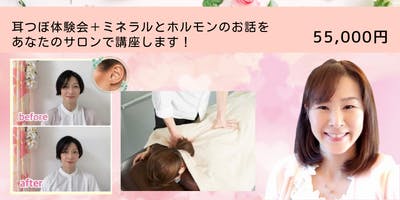 14、 耳つぼ体験会+ミネラルとホルモンのお話をあなたのサロンで講座します!:55,000円(3名様)