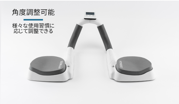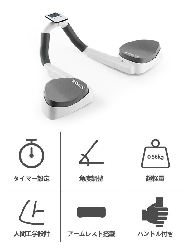 時間設定が可能なタイマー。鍛えたい部位に合わせた角度調整式。肘への負担を軽減できる人間工学に基づいた設計。