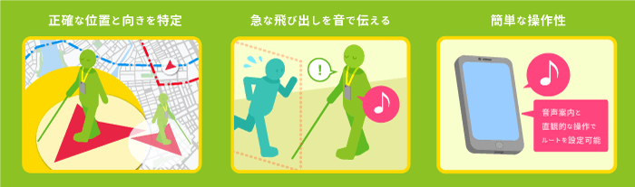 「白杖では、半径1m以内という非常に狭い場所しか把握できません。白杖を使って行ける場所は、以前行ったことのある場所か、記憶している場所だけなのです。私は歩くことが好きで、本当はもっと様々なところへ出歩きたいと思っています。」 筑波技術大学で学んでいる視覚障害を持った学生の言葉です。
