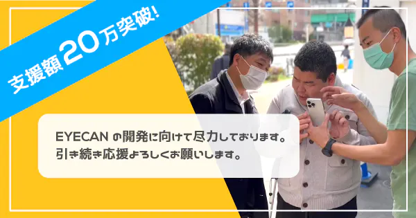 さて、4月の終わりから始まったEYECANクラウドファンディングのプロジェクトですが、支援金額が20万円を突破しました。
