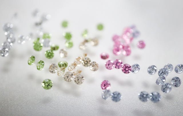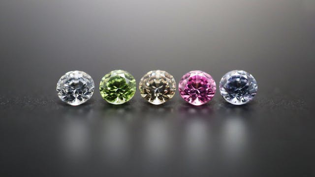 硬度9 Mohs(天然ダイヤモンドは10に分類)、屈折率2.28(ダイヤモンドは2.4)で、これにより初めてダイヤモンドのようにカットできます。すべての石は、±0.01 mmの変動許容値にカットされそれぞれ個別に研磨されます