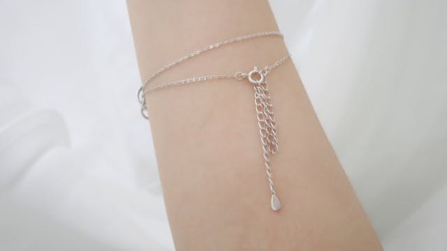 多くのネックレスは「チェーン40cm+アジャスター5cm」ですが、本品はチェーンが短めの35cm、アジャスターが長めの10cm。これにより2重にすればチェーンブレスレット・アンクレットとしてもお楽しみいただけるようデザインされています。