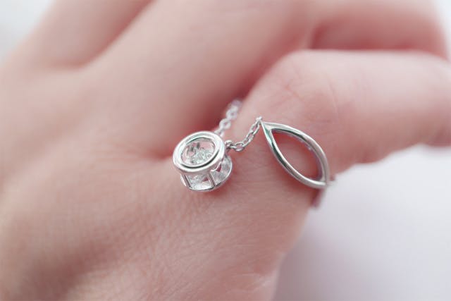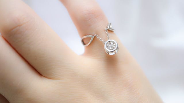 ファランジリングは指の第一関節と第二関節の間に身に着ける、指先を美しく見せるリングです。