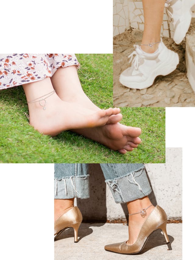 アンクレットでもブレスレットと同様に2重にしてご利用いただけます。きらめき続ける足元に注目間違いなし!!