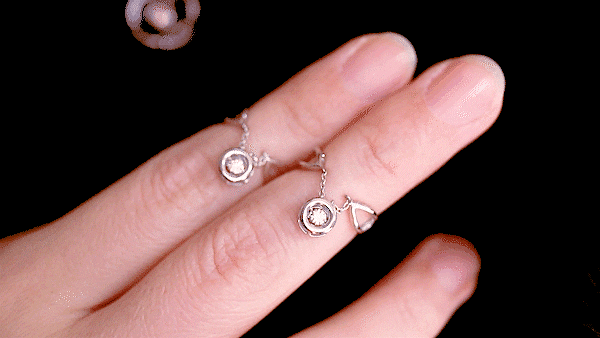 この複数の使い方ができるジュエリーは「ダンシングストーン」部を除き、当店のオリジナルデザインとして国内での「意匠権」を申請中です。