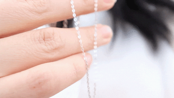 ネックレスには、幅約1.0mmの「潰しアズキ」というチェーンを使用しています。