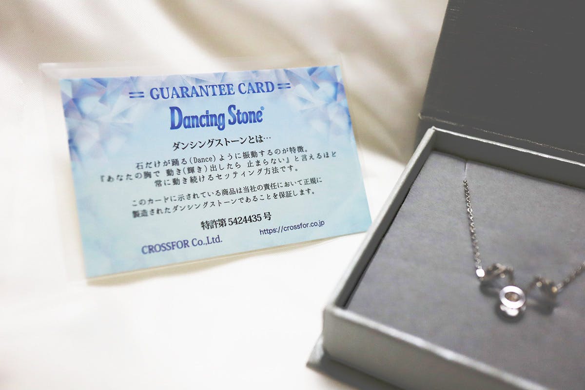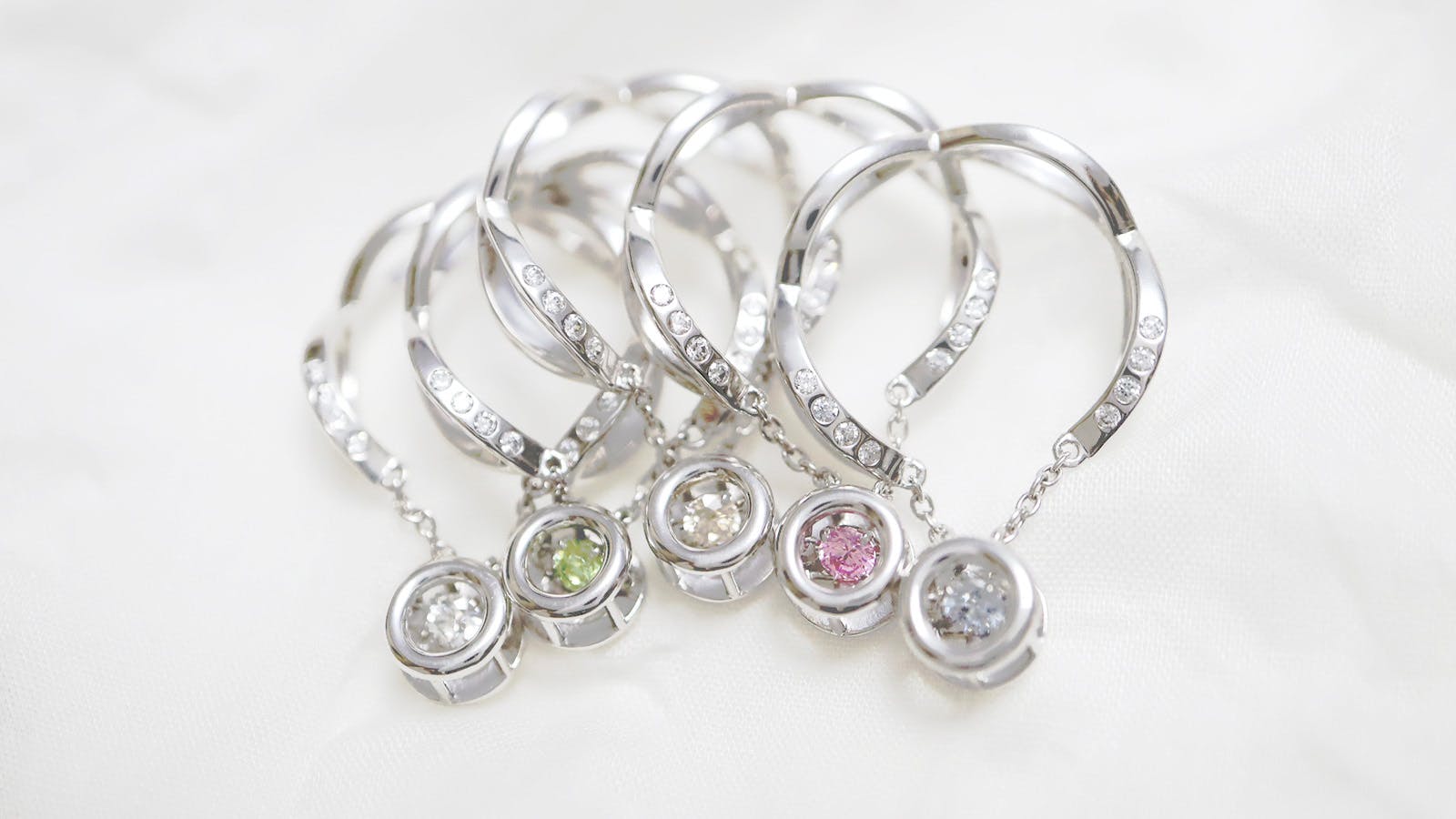 1980年に山梨県甲府市に誕生したジュエリーメーカー「クロスフォー」社が2010年11月開発した「人のわずかな振動できらめき続ける」ジャパンクオリティの特許取得製品です。