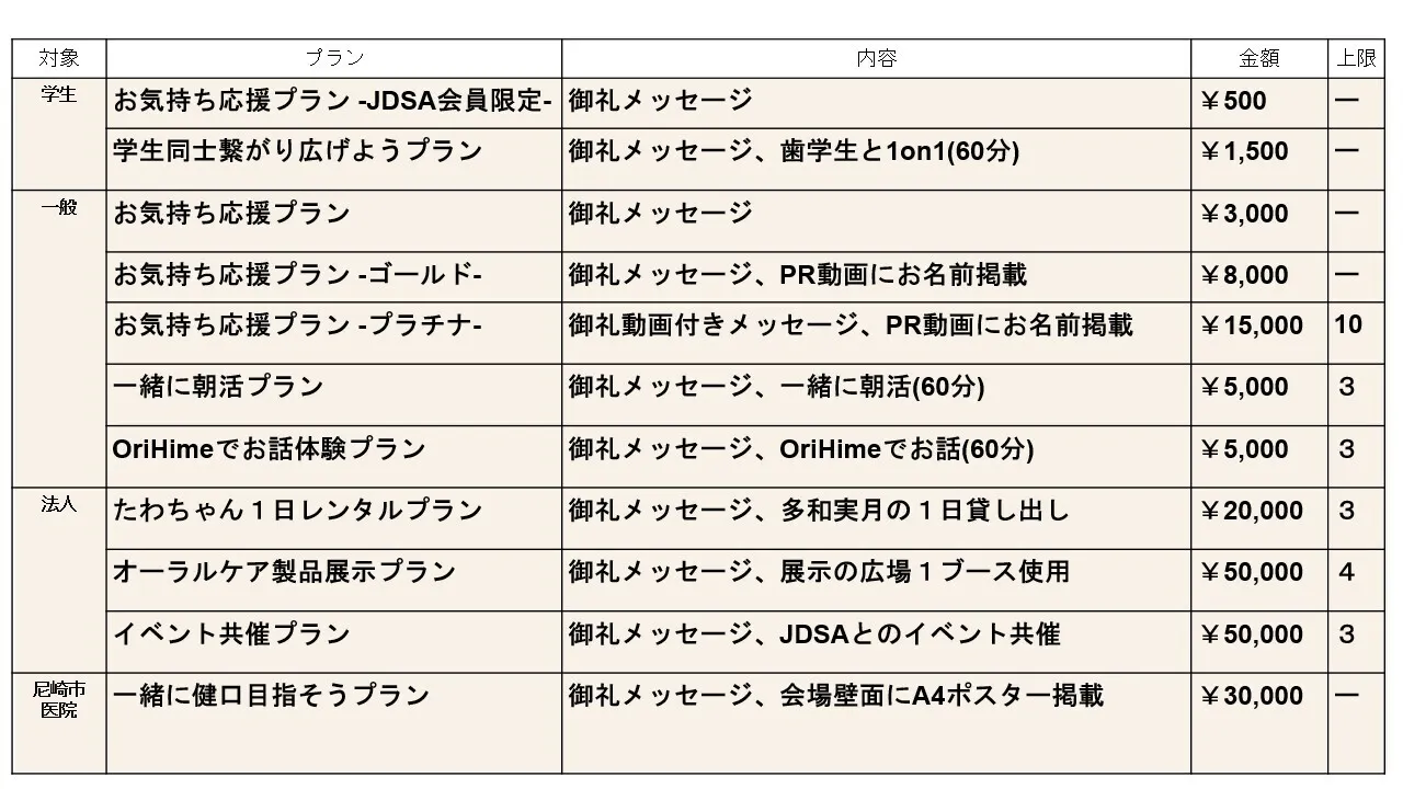 ⑸日本歯科学生連盟への寄付:他にも歯学生発のプロジェクトが誕生する願いを込めて皆様からの応援をお裾分けさせていただきます。