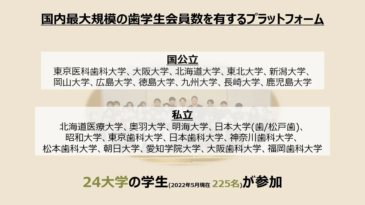 これほど多額の資金を必要としてでも、今までにない規模で歯学生発のプロジェクトを実行したい理由について説明させてください。