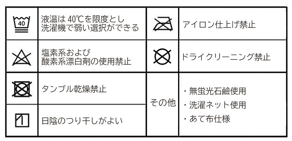 お洗濯の際はネットに入れ、お洗濯後は陰干しをしてください。