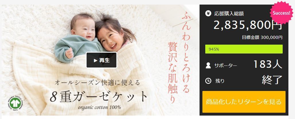 2021年1月に実施した初回プロジェクトでは、目標金額の945%、183名の方にご支援をいただき、記録的なプロジェクトになりました。