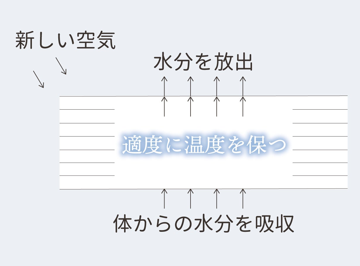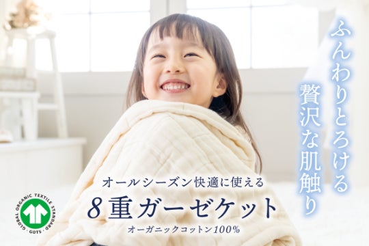 また、8重の中に空気をたっぷり含んで適度な温度を保ってくれるため、年中快適にお使いいただけます。