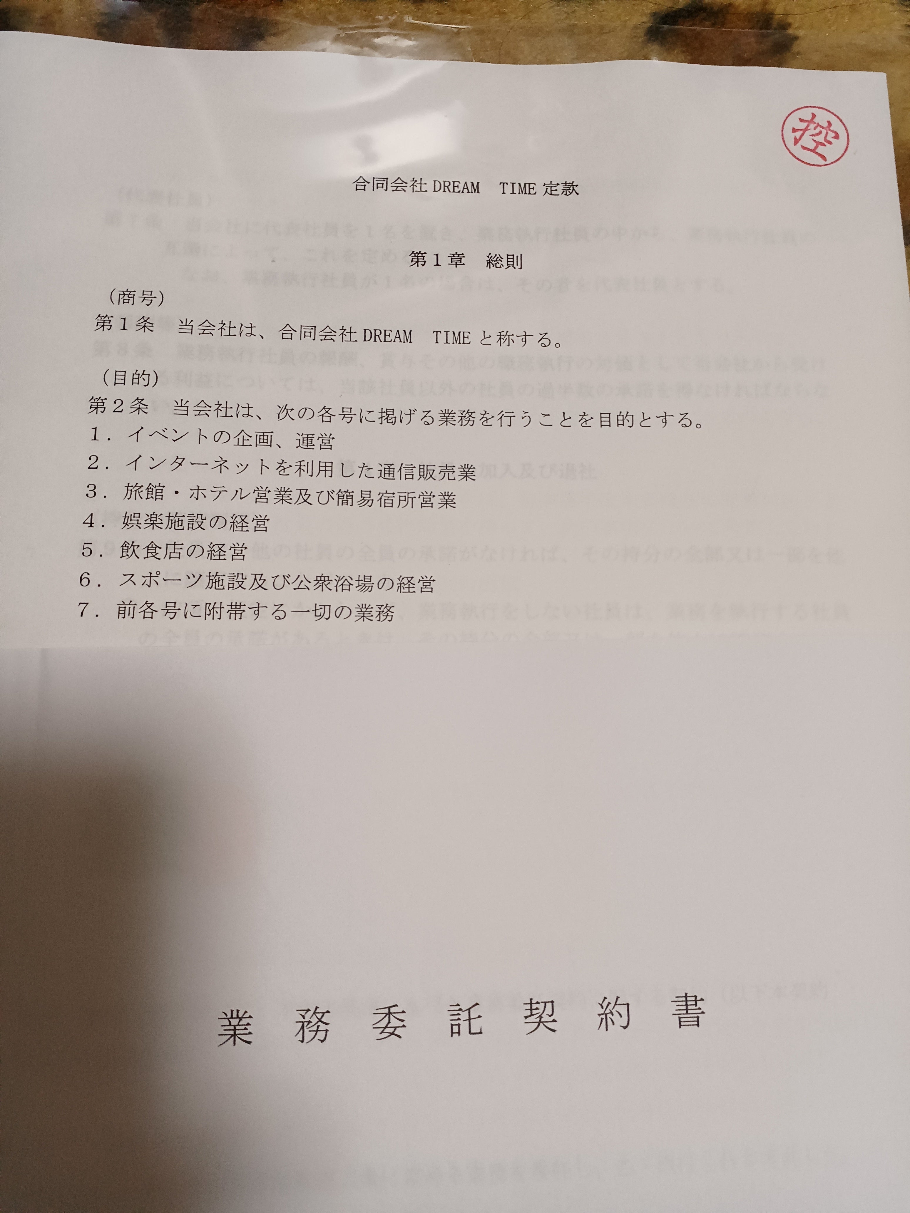 担当の司法書士と税理士・会計士の先生から届く、登記登録前の確認資料です。信用度を高める為に、投稿します。