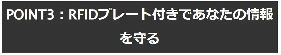 このウォレットには「RFID スキミング防止機能」を採用。