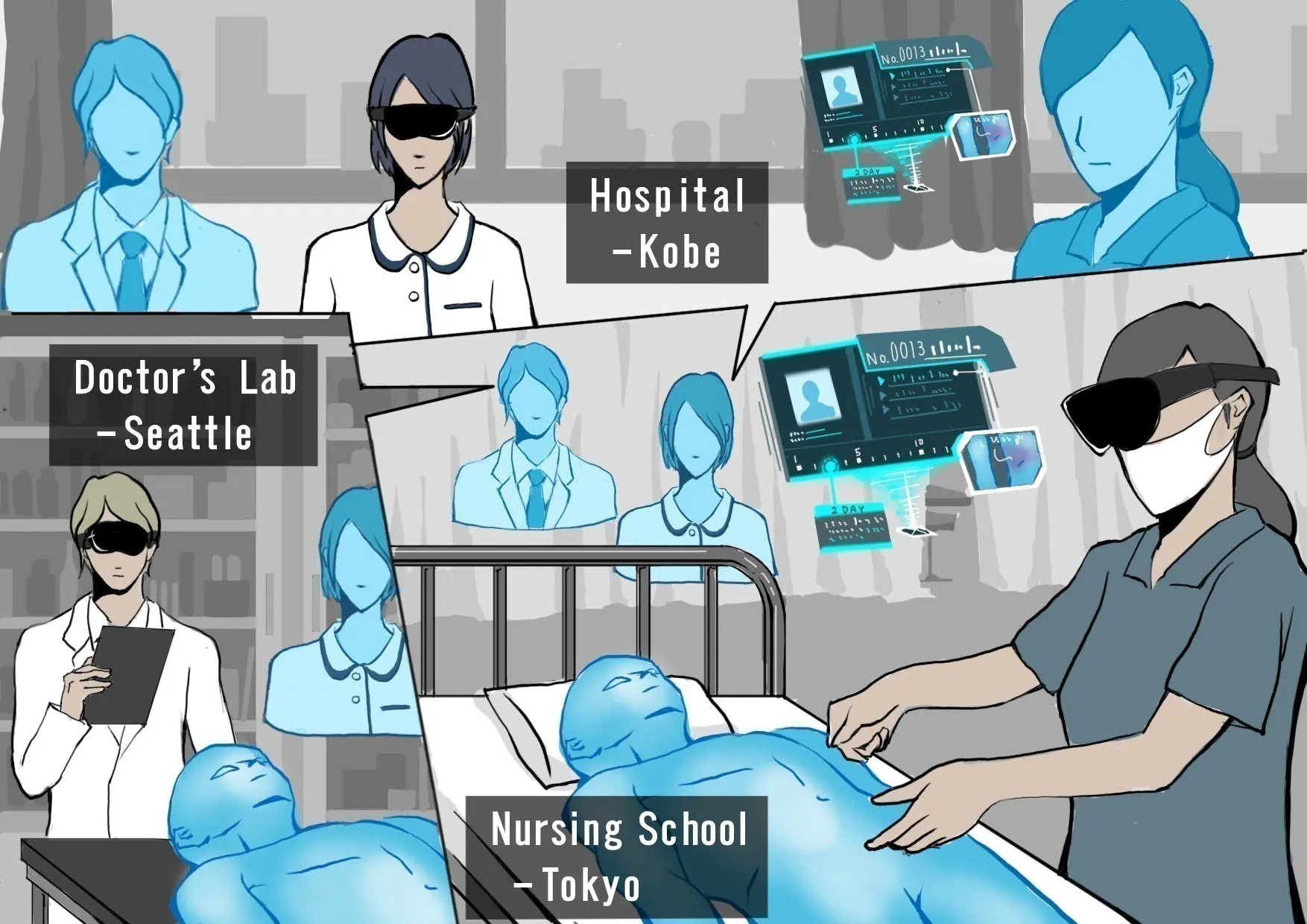 VR教材であれば、院外からでも※VRゴーグルを使ってバーチャル空間に入り、CGの患者さんと出会うことが可能となります。本取り組みは、感染拡大や災害による看護学生への影響を解決すると共に、看護学生にとっての教育格差を是正することにも貢献します。新型コロナ感染拡大により看護師の役割の重要性がクローズアップされました。
