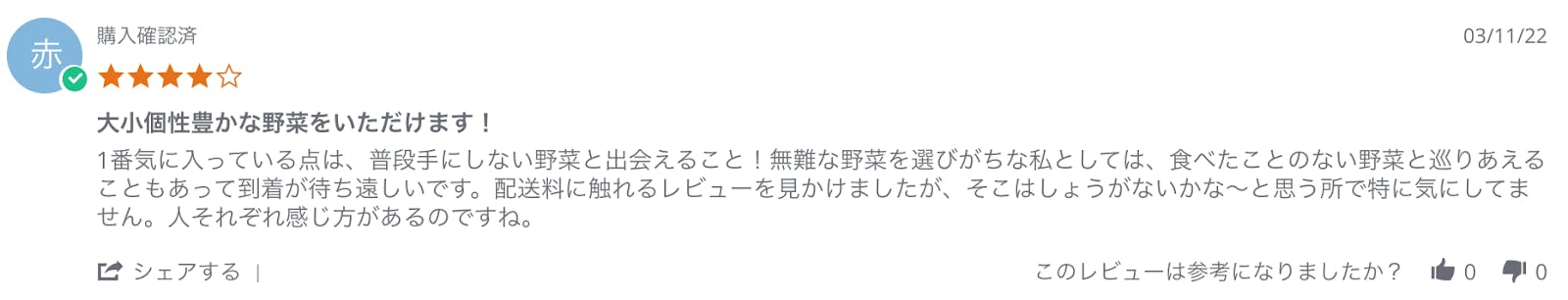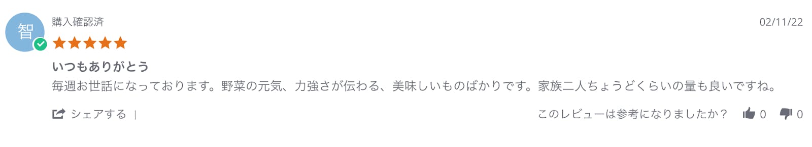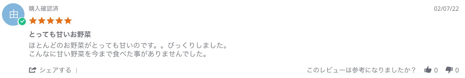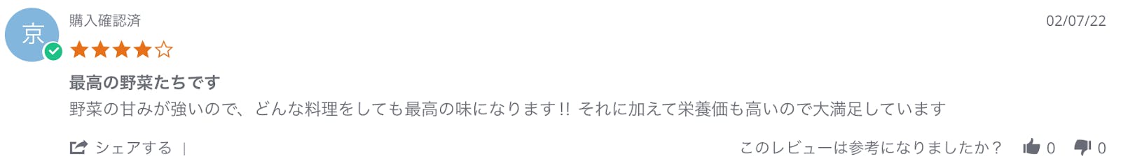 *以下、ツクヨミファームから収穫された野菜を購入されたお客様の口コミを一部抜粋: