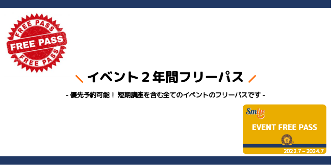 ・SMILEが主催する全イベント(短期講座含む)に2年間費用なしで参加できます!