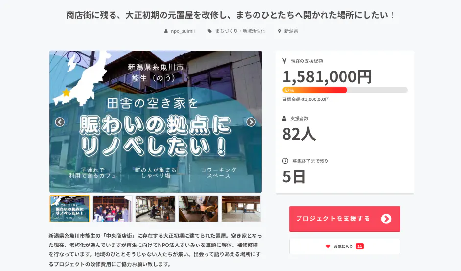現時点で、1581,000円のご支援をいただいております。