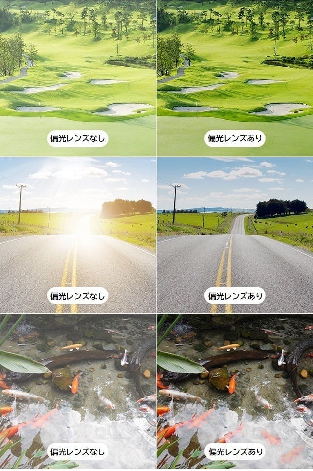 ・ 強い紫外線から目を守ることは必須。偏光レンズは道路からの照り返しも防いで視界をくっきり!