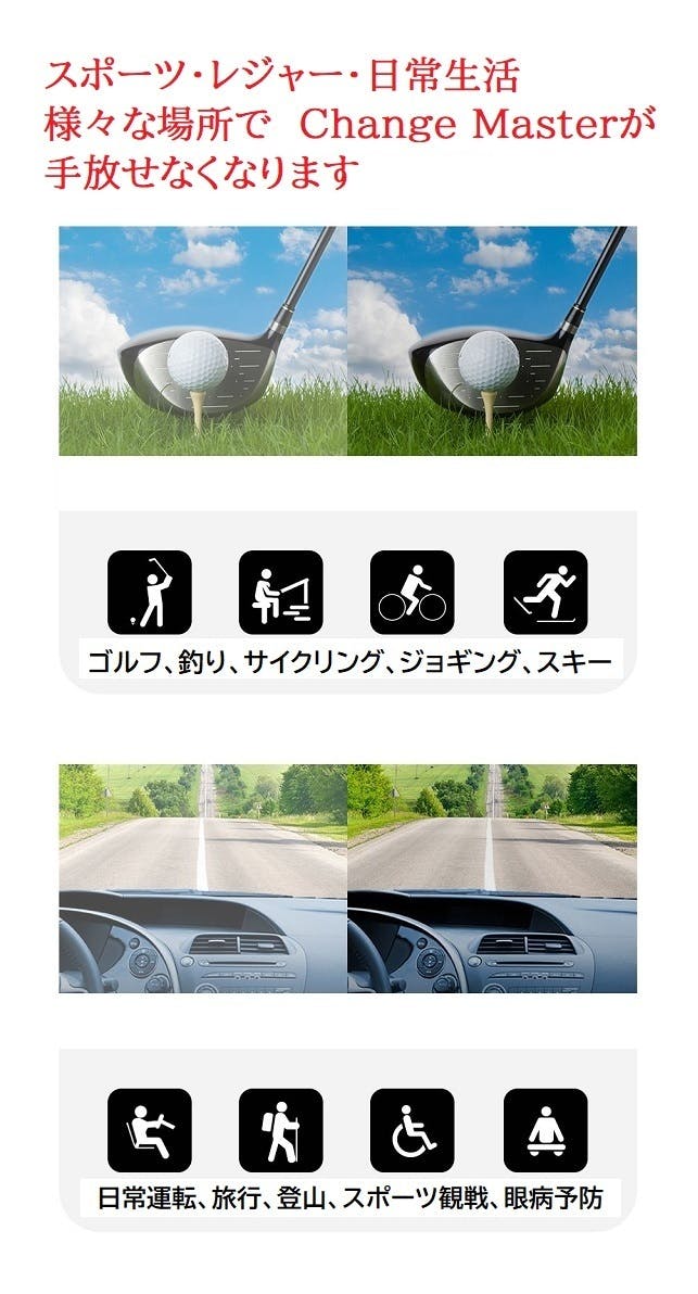 「ChangeMaster」をたくさんの方に知ってもらい、サングラスの重要性を伝えたい! 幅広い世代、幅広いシーンでサングラスを必須アイテムにして欲しい!との思いからプロジェクトを実行いたしました。眼を守るためにも安全にパフォーマンスするためにもサングラス「ChangeMaster」を相棒にして欲しいと願っています。