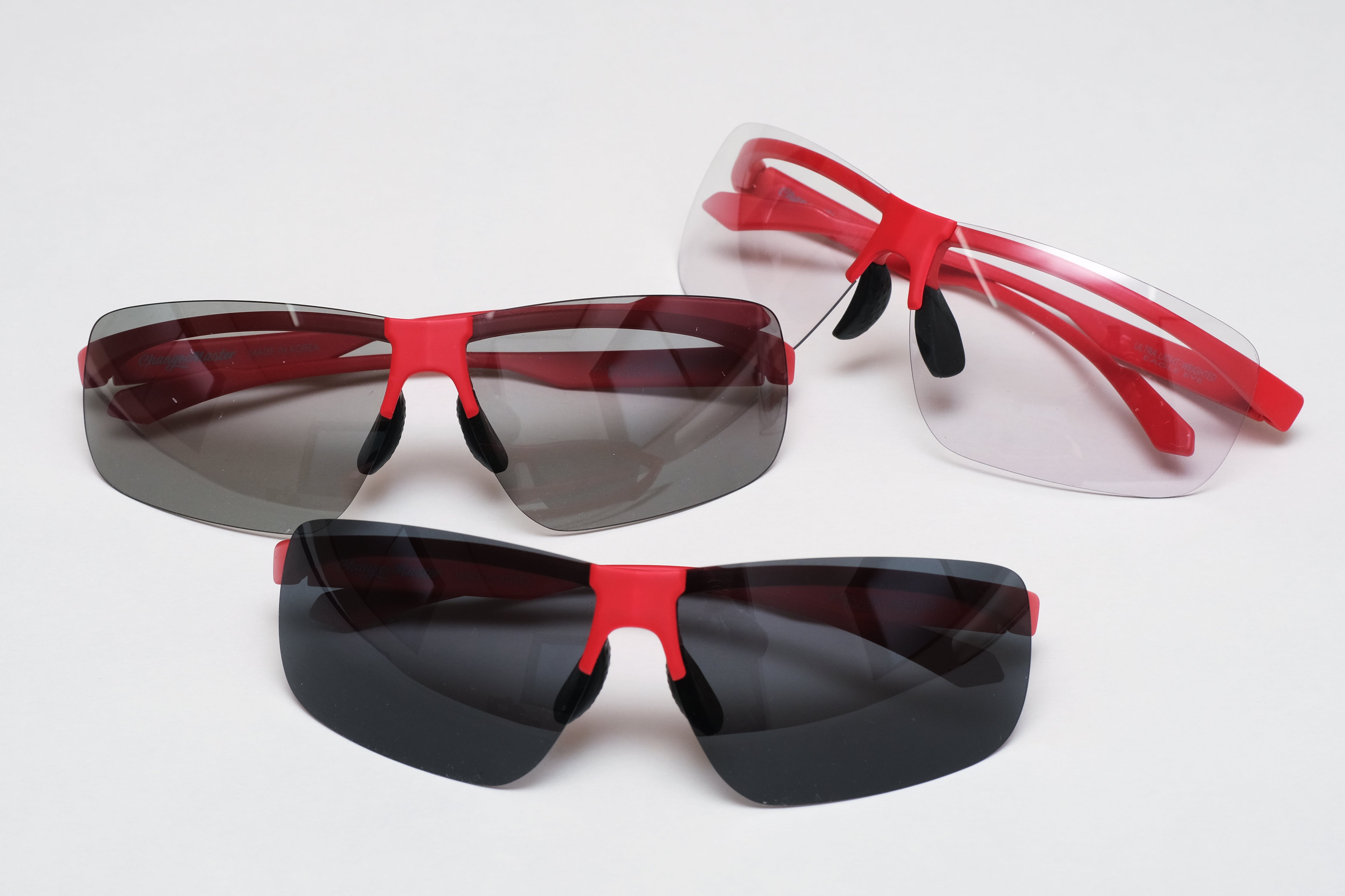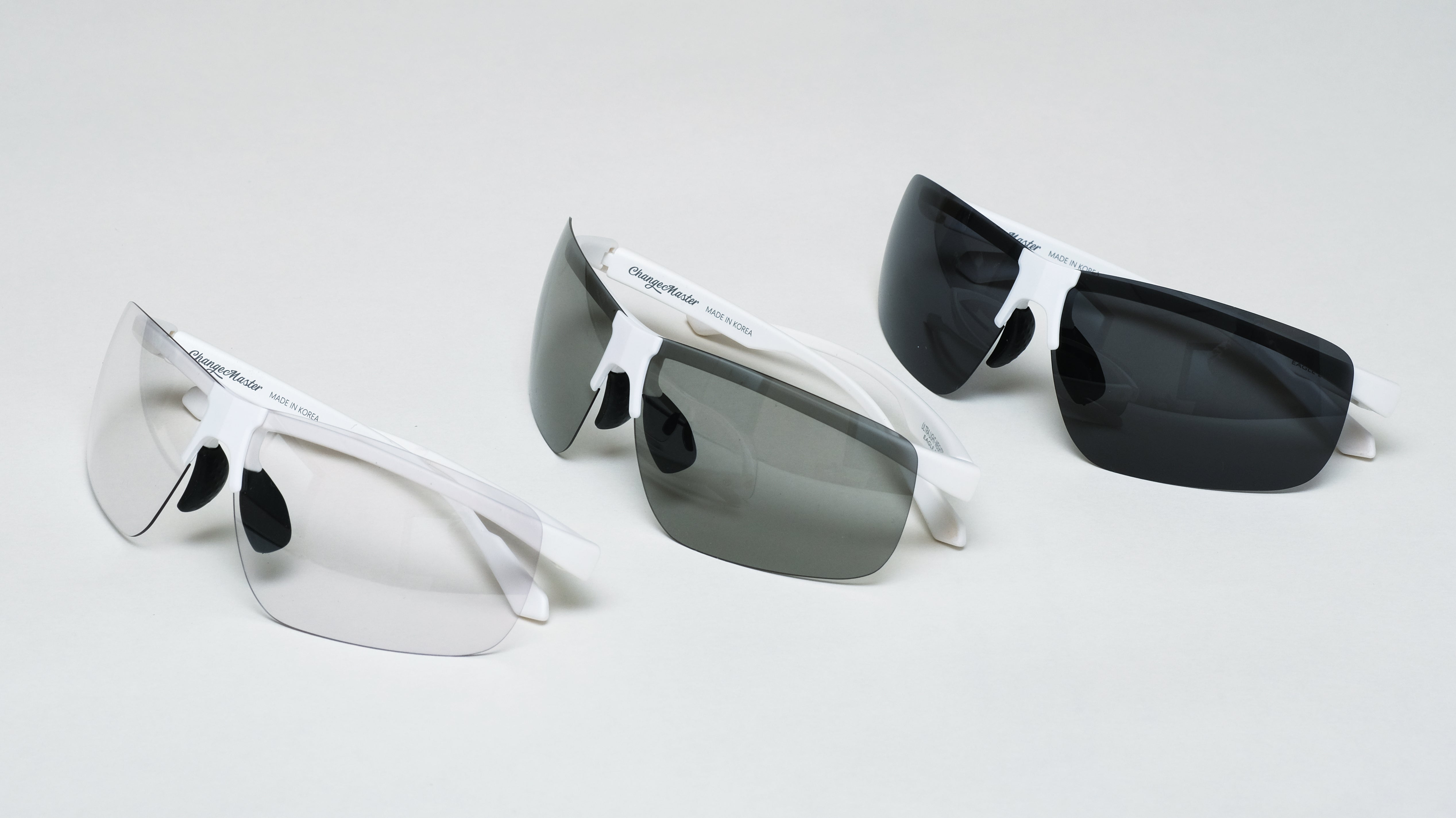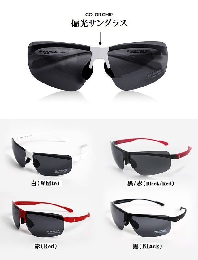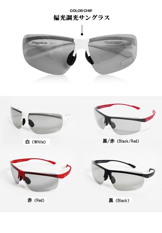 Change Masterは いままで無かった14gの軽さのサングラスの開発を実現しました。これまではサングラスの重さが短所であり 長時間の着用の不便さがありましたがChange Masterはその重さを解決するとができました。