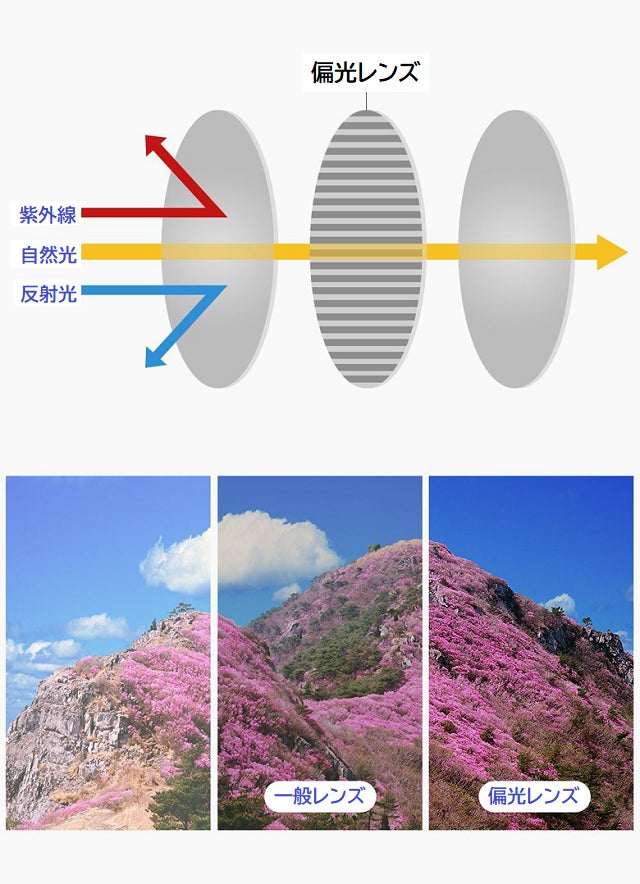 眩しさを制御しクリアな視界を確保する偏光レンズと