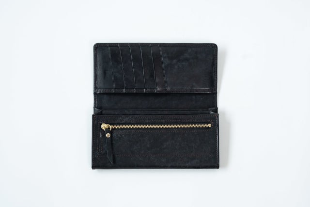 一般的な財布の構造とは全く違う概念で作られる風琴財布。