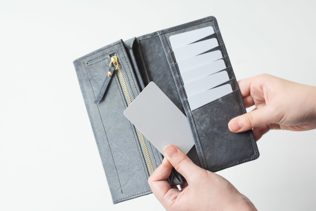 ポケットの入口を斜めにして、カードが出しやすい設計にしました。