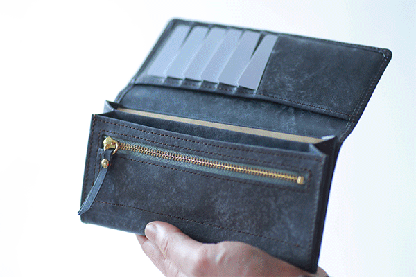 一般的な財布の構造とは全く違う概念で作られる風琴財布。