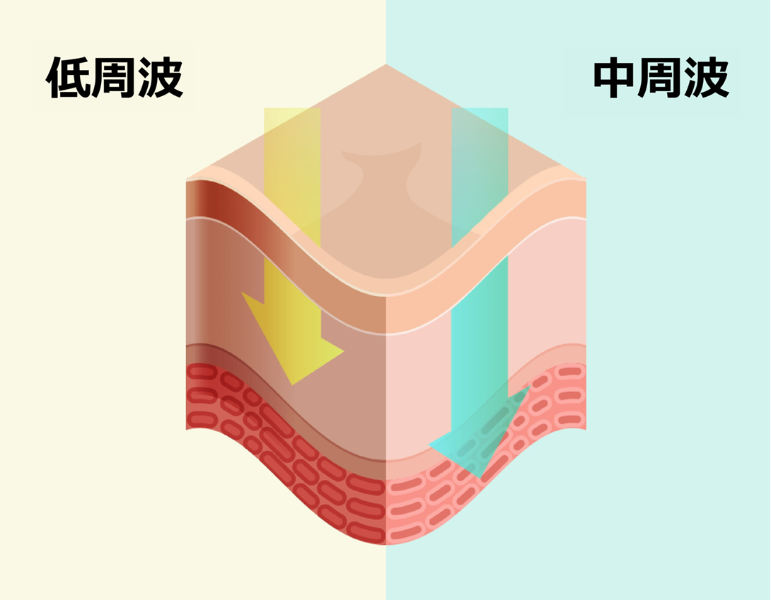 『中周波が加わって筋肉深部まで到達する