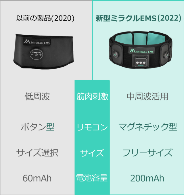それが、中周波が加わってもっと強力になったミラクルEMSの今回の製品です。