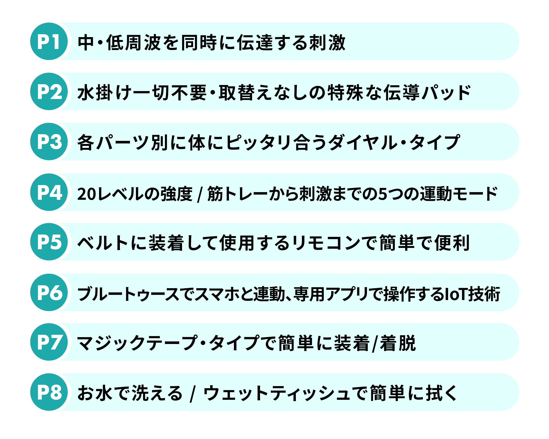 さらに、持続的な技術開発を通じて消耗品の交換や洗濯、保管の不便を解消してきました。 継続してより良い製品を開発し、低周波よりも効果的な中周波製品を開発して、磁石型クレードルを開発して、使用中にデバイスが落ちる現象を防止し、より安定感を持って使用できる製品を開発しました。