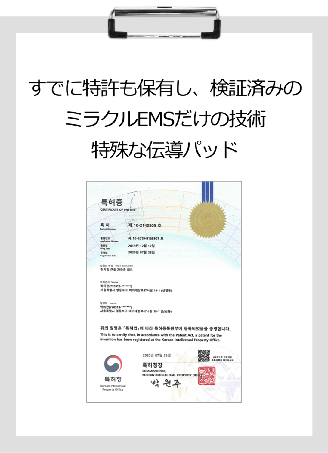 また弊社は今回のCAMPFIREでプロジェクトを実施するこのMiracle EMSの本社である韓国の株式会社 MIRACLE HEALTHCAREの日本に於ける独占販売権を有する正規代理店でございます。